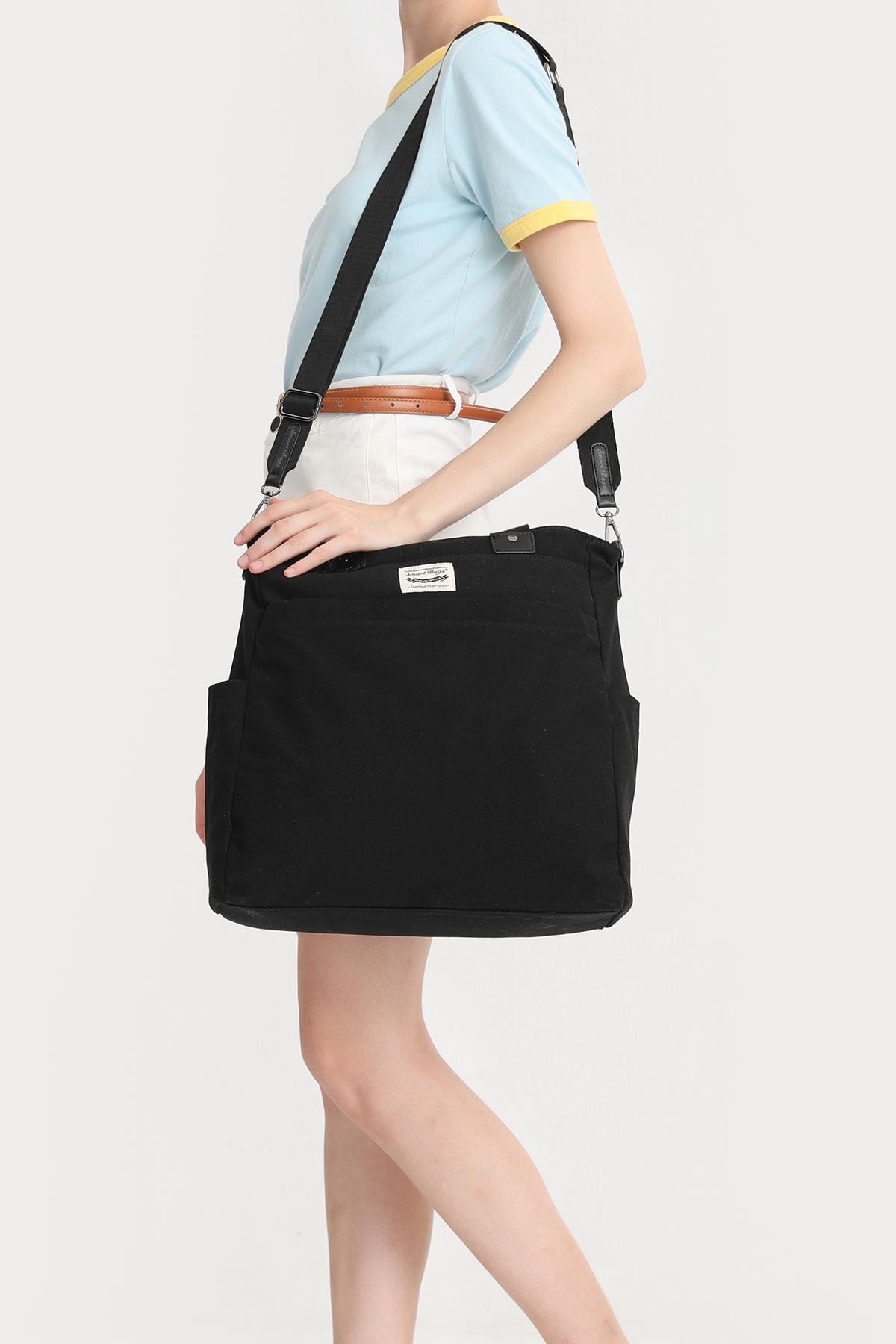 SMARTBAGS KANVAS KUMAŞ KADIN OMUZ ÇANTASI 2022-1309 SİYAH