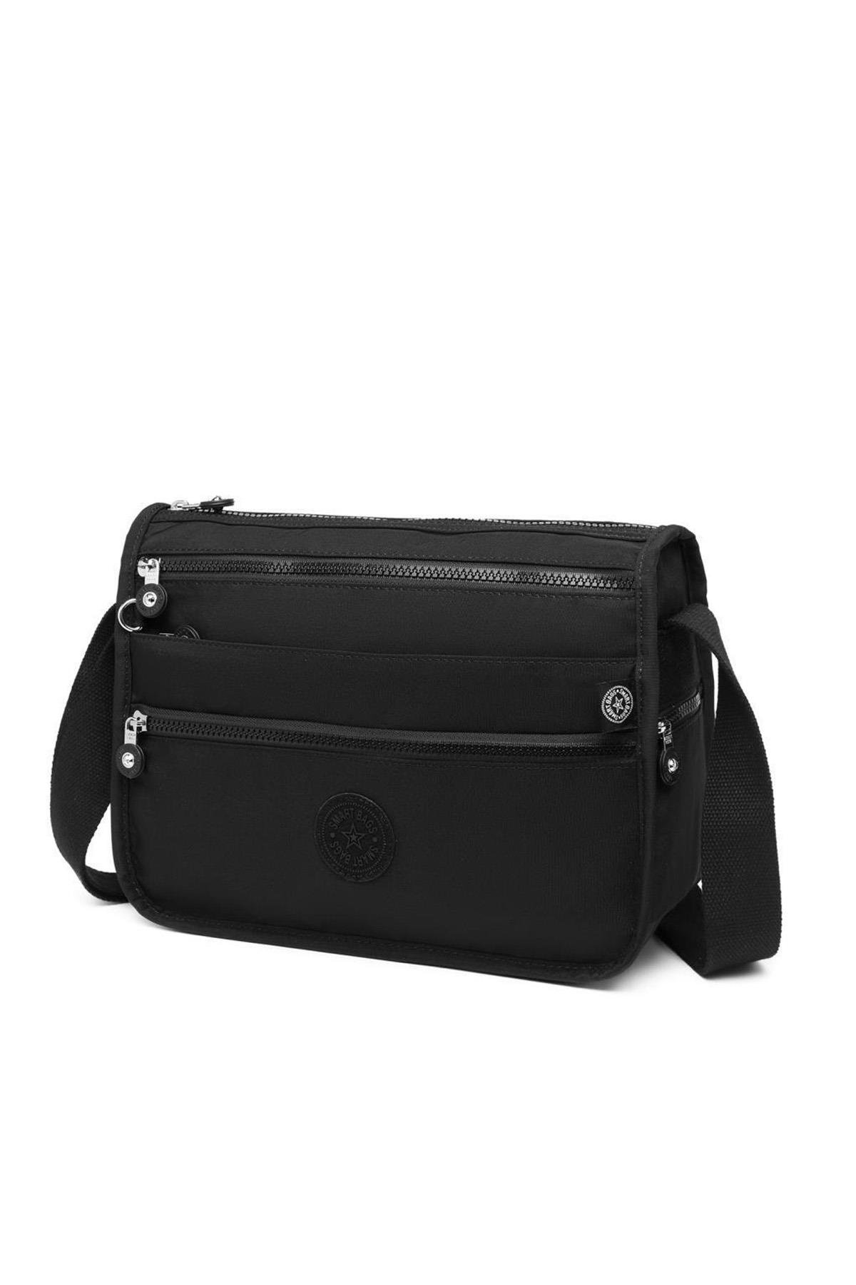 SMARTBAGS KIRİNKIL KUMAŞ KADIN POSTACI OMUZ ÇANTASI 2022-1128 SİYAH