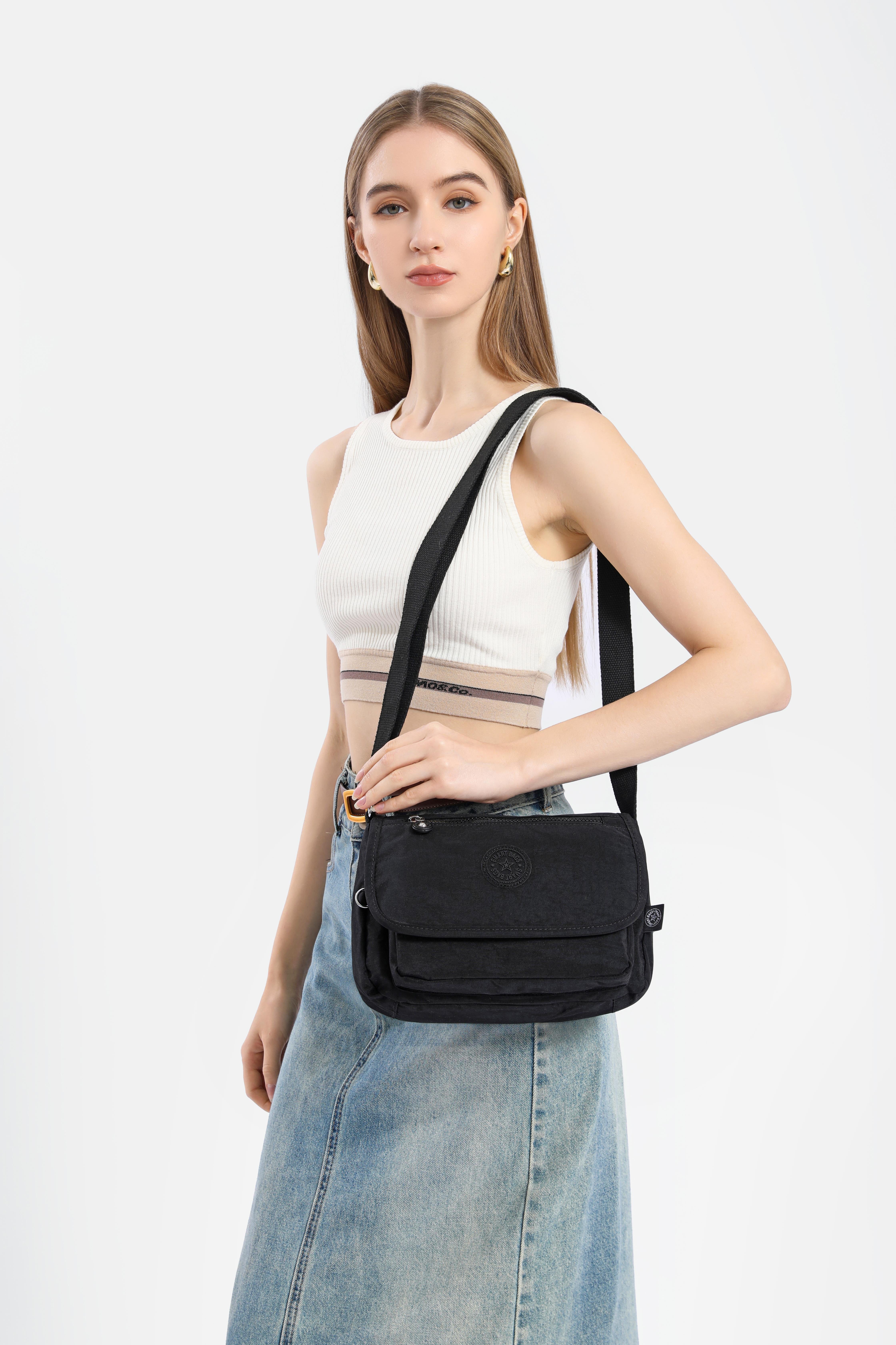 SMARTBAGS KRİNKIL KUMAŞ KADIN ÇAPRAZ ÇANTA 2022-1148 SİYAH