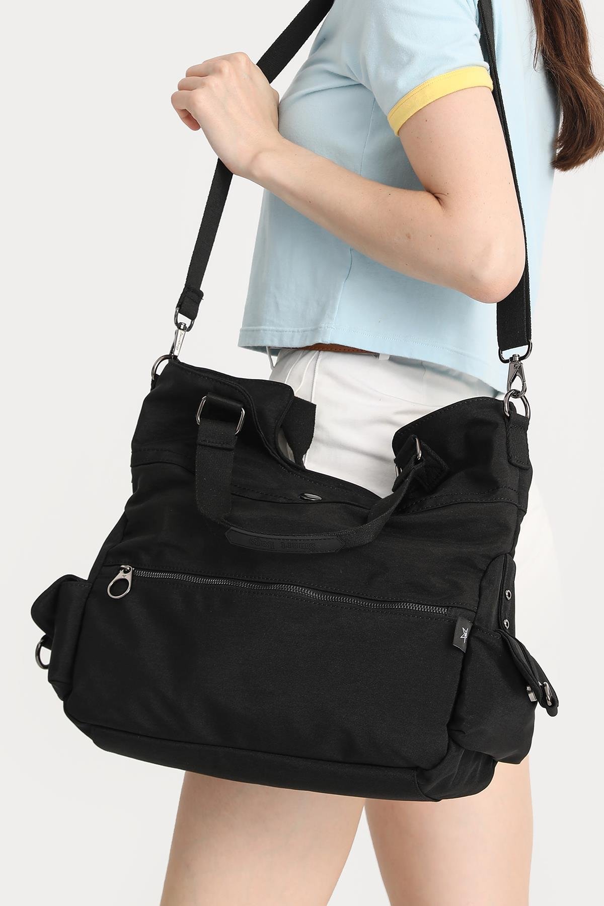 SMARTBAGS NANO METALİK KUMAŞ KADIN OMUZ ÇANTASI 2022-3221 M METALİK SİYAH